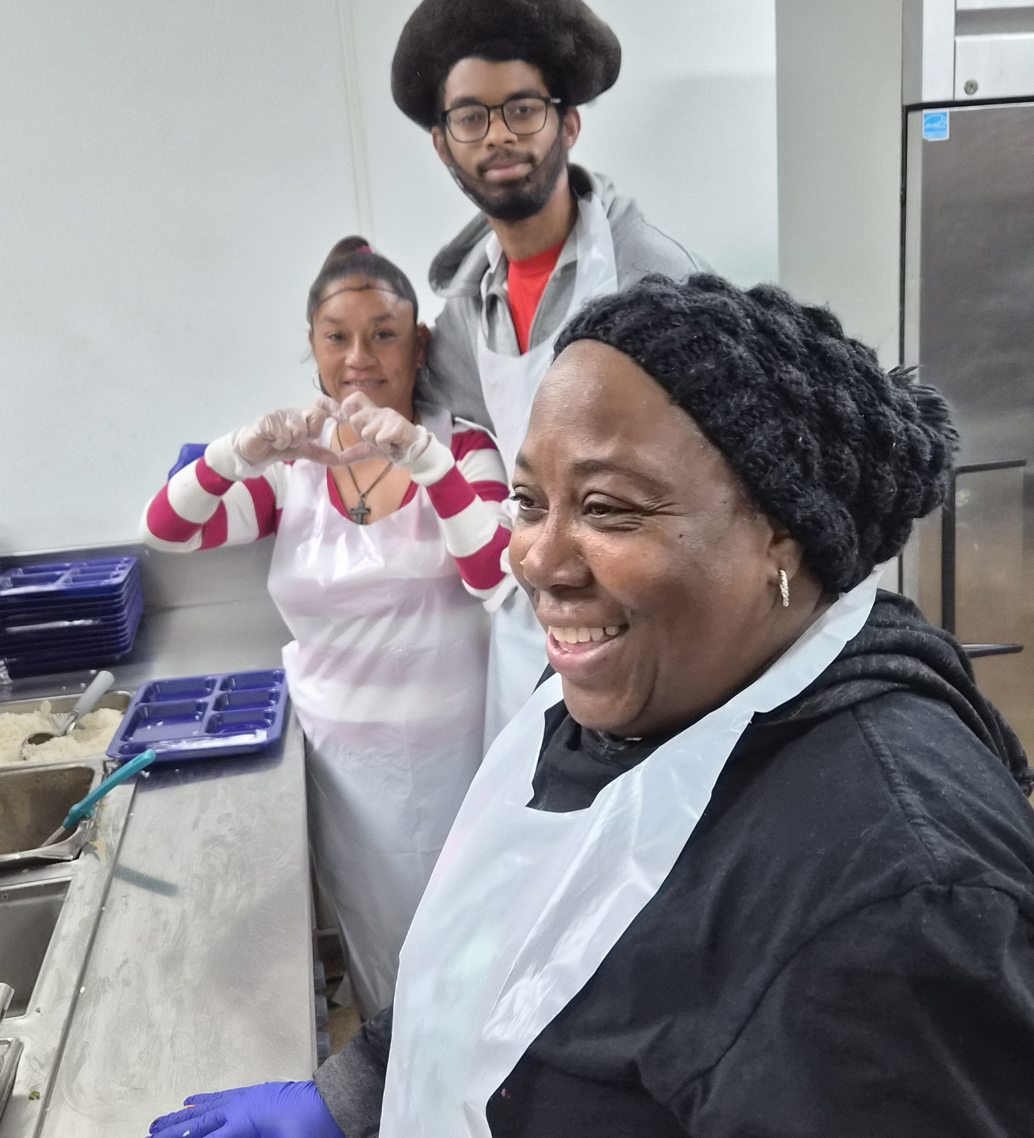 Our staff identifies, trains, and mentors homeless clients to work in our kitchen. Clients are trained in food prep, sanitary methods, inventory management, kitchen maintenance, team work, workplace skills, and more. Clients are mentored to enter the job sector with marketable skills and self-sufficiency.