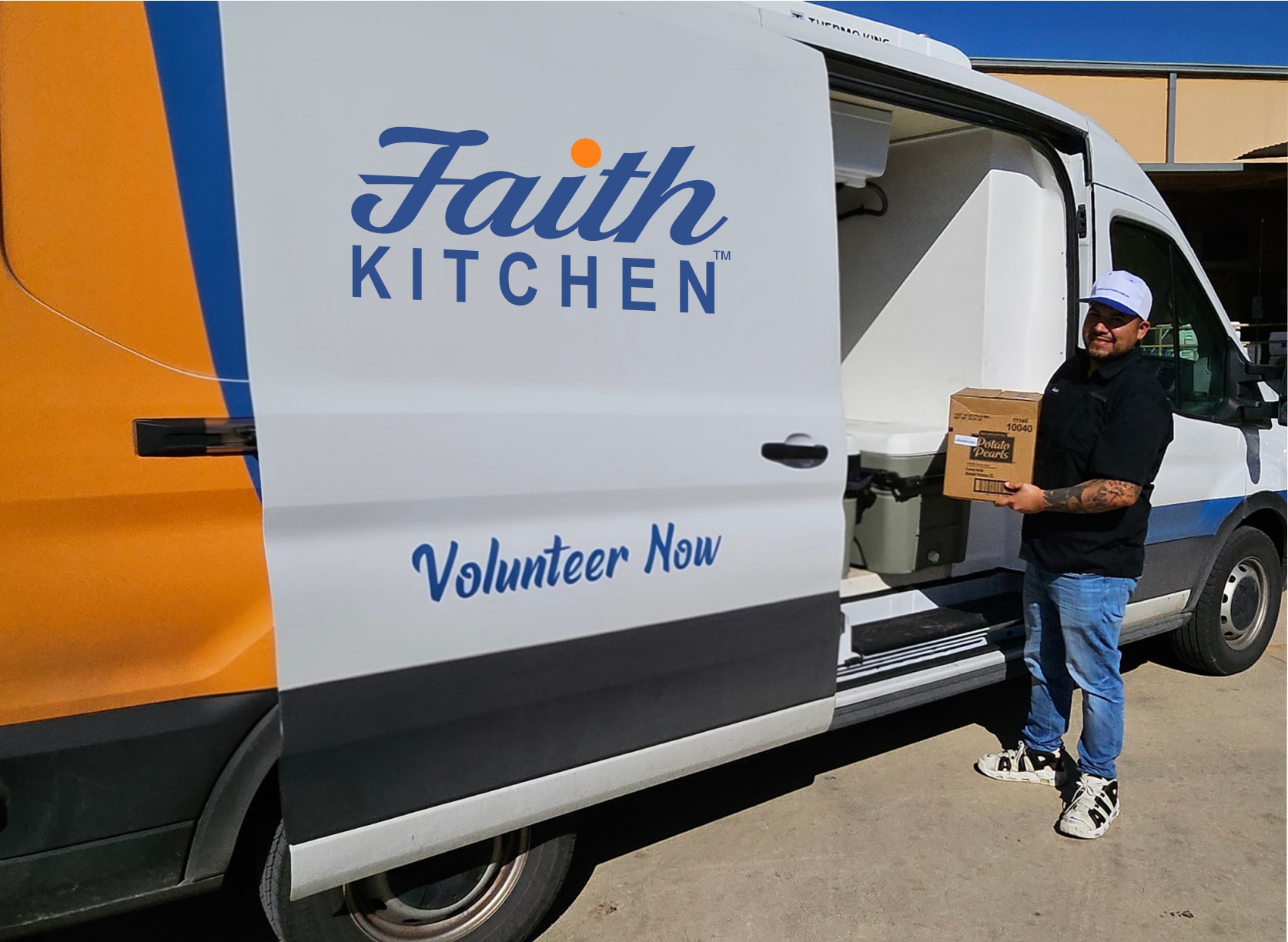 - Do you own a restaurant or any food business and have perishable food leftover? You can help feed the homeless by partnering with Faith Kitchen. We send out a sprinter van daily to pick up food donations. Special pickups can be scheduled. Our driver brings the food back to our kitchen. At the close of each month, we email you a receipt for your charitable donation.